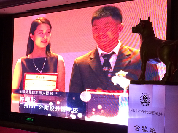 金犊奖的竞争极为激烈。首先,组委会从获得金奖的参赛选手中挑选出5名选手进入金犊奖提名,这5名选手代表着本届参赛选手的最高水平。颁奖会现场,由参会代表观摩入围选手的参赛短片,现场投票,现场唱票,现场公布结果,全程电视录像以体现公平、公正、公开。每届比赛仅投票评选出一名获奖选手。我校选手仲曦彤凭借着纯正的发音、优雅的台风和独特的短片设计以压倒性优势获得该荣誉。这也是11年来广东选手第一次打破该奖项长期被江、浙、川等少数省份垄断的局面。“仲曦彤不仅为广州争了光,也为广东省争了光。”开奖之后,亲临颁奖现场的广东省教育厅领导兴奋的说。