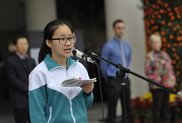 来自高二的许爱建同学在发言中呼吁大家,新学期的开始,也是做出改变的新起点。作为国家的公民,不论力量或大或小,都应该思考为这个社会做点什么。如果大家一起来关心整个环境、社会以及身边人群,那么整个社会将发生大的改变,也只有这样才能创造一个更好的生活环境。