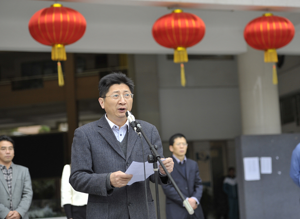 副校长谢仁发上台致辞。谢仁发总结了过去一学期中学部取得的成绩,对高三保送生以及国际部学生出口情况做了简单介绍。谢仁发表示,在新的学期,中学部、国际部将继续按照学校工作的整体布置,强化管理,加强师资队伍建设,加强年级、班级文化建设,抓好德育、教学常规,进一步深化课堂教学改革,狠抓初三、高三毕业班复习迎考工作,为外校的进一步发展做出新的贡献。