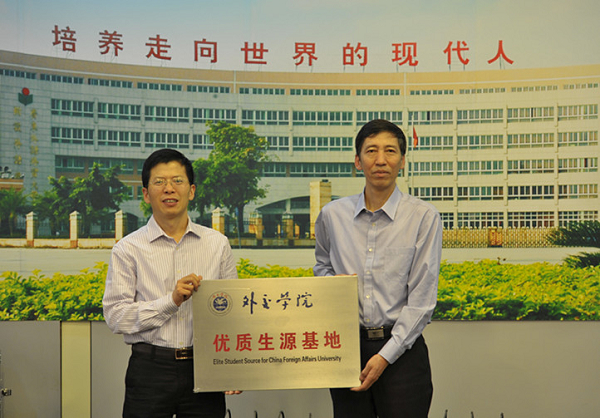 4月22日,外交学院优质生源基地授牌仪式在我校举行,外交学院学生处处长吴秀明前来为我校授牌。我校校长万清华、副校长谢仁发、副校长方建军、校长助理杨如华参加了授牌仪式。仪式由我校副校长谢仁发主持。