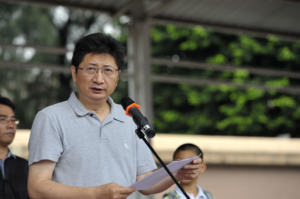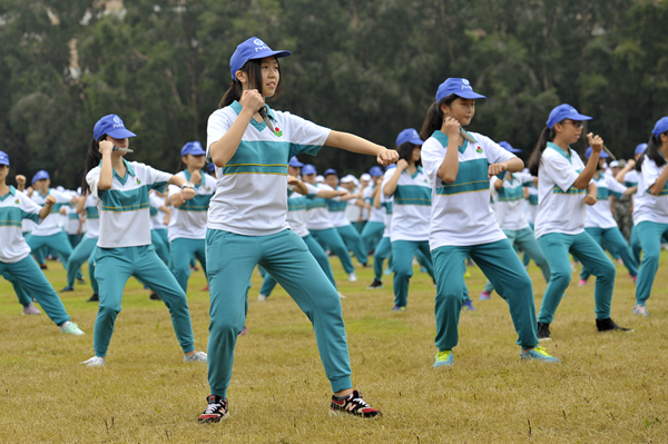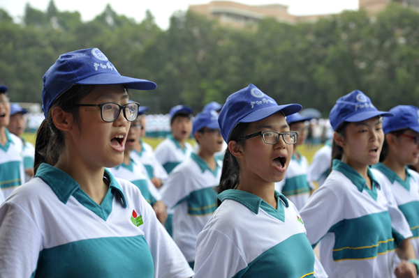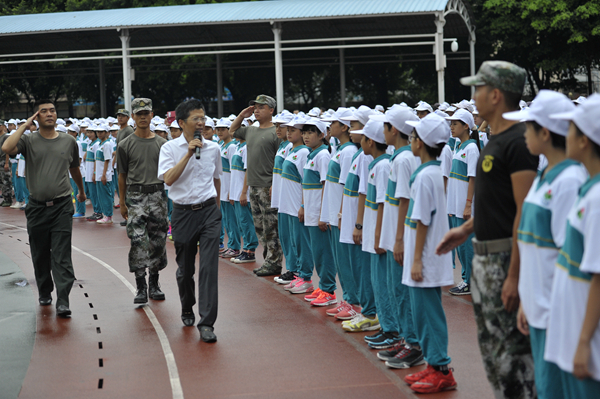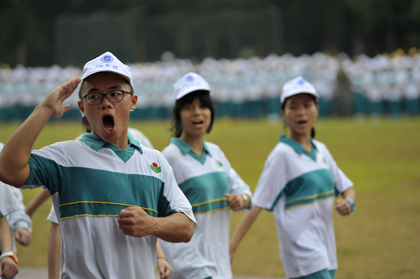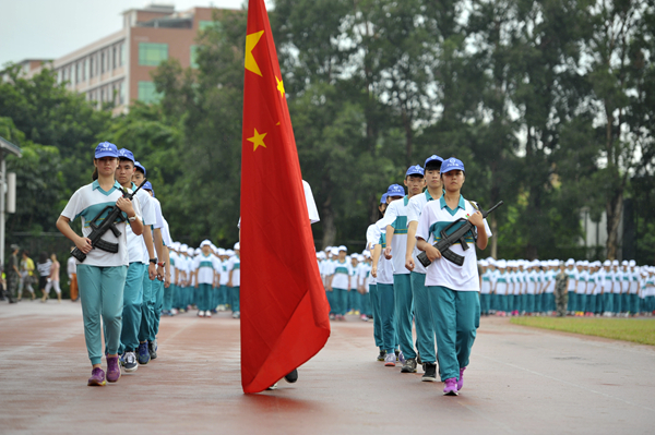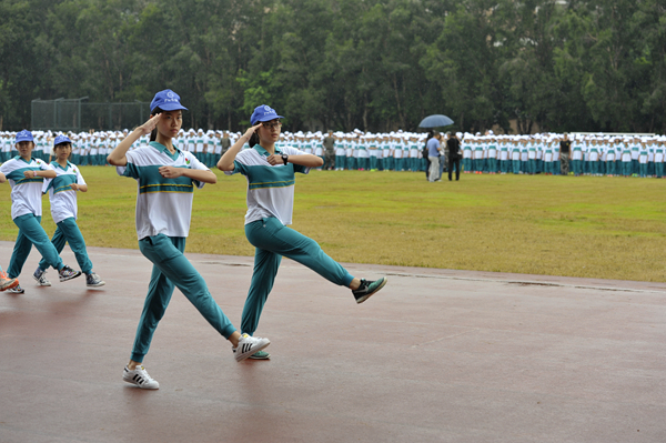 9月2日,我校中学部军训会操表演在田径场举行。五天的艰苦训练,两千多名军训学员挥洒的汗水结出硕果。在汇演现场,学员们个个英姿飒爽、气势昂扬。我校校领导、广州市国防教育职业培训基地李队长就坐主席台观看了汇报表演。汇报表演由高中学生处主任姚小平主持。