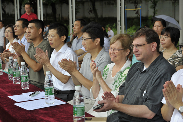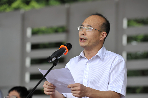 接下来,副校长谢仁发宣读优秀班级体、个人先进标兵颁奖名单,学员上台领奖。校长万清华宣布军训圆满结束。