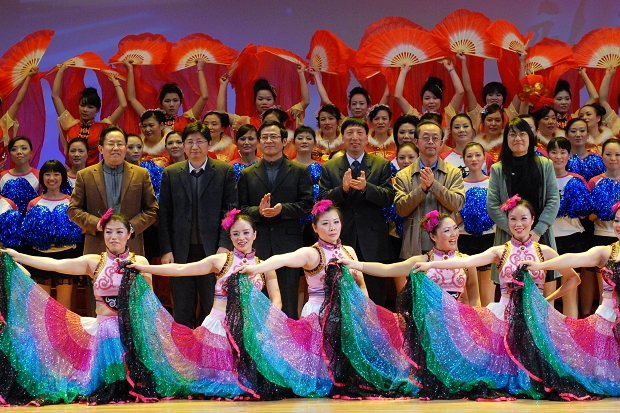 莺歌燕舞相比美,龙腾虎跃竞争先。1月11日晚,黄华楼礼堂流光溢彩、欢歌笑语,我校700余名教职员工欢聚一堂,喜迎新春佳节。广外教育发展集团总经理谢应东出席并观看了团拜会。