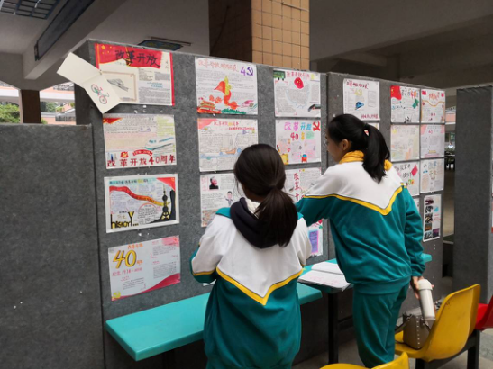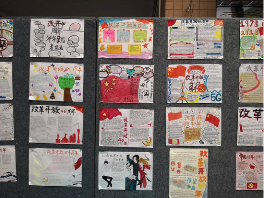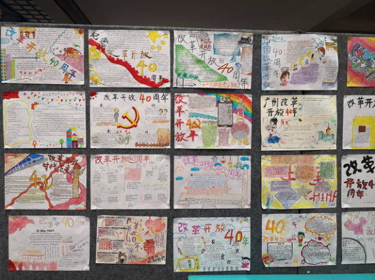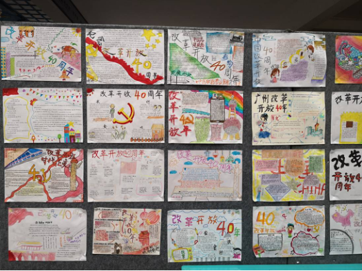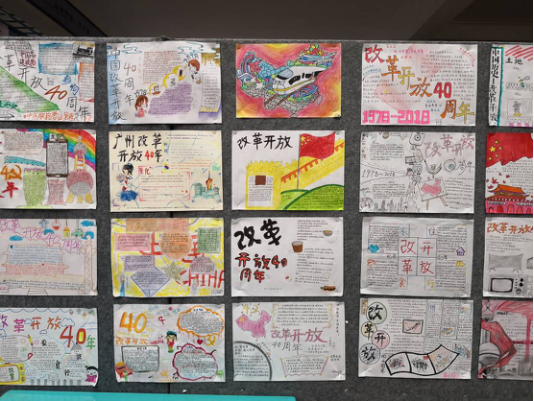 借着改革开放的春风,吹绿大江南北,为纪念改革开放40周年,提升中学生的家国情怀,2018学年在白云区中学生中组织开展 “纪念改革开放40周年”中学生历史主题手抄报比赛活动。历史组闻讯后,立即组织相关筹备工作,分工实施。