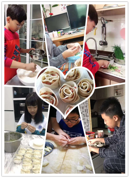 闲暇周末,学生与家人一起积极备赛,亲手做出色香味俱全的饺子。