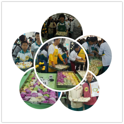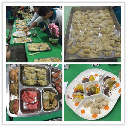 饺子大赛以初一在校学生所在宿舍为单位,学生小组合作制作美食。造型优美,色彩多样,饱满多鲜的饺子经由食堂师傅蒸煮加工,新鲜出炉,恒香四溢,供“尝委”品鉴,教师同家长学生共宴。