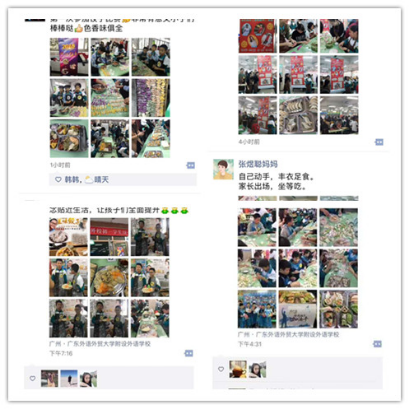 家长点赞:“学生制作的饺子,色香味俱全。棒棒哒!”“饺子大赛,学生们各出奇招,体验生活乐趣,学校育人理念贴近生活,为广外外校,点赞!!!”
