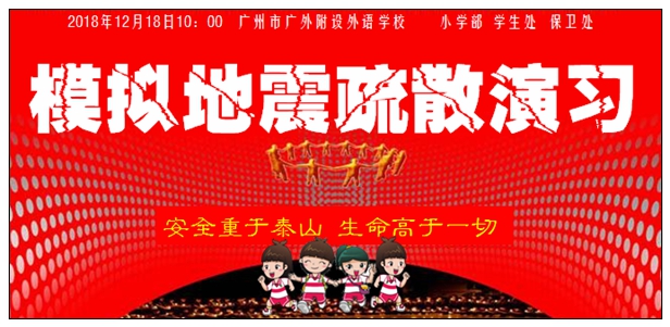 为了进一步增强全体师生的安全意识,帮助同学们掌握正确的逃生要领,提高大家面对突发事件的应对能力和心理素质,今天,我们组织了这场 “地震逃生安全疏散演练”。演习的场景是模拟的,但同学们参加演习的态度应该是认真的、严肃的。通过演习,让老师和同学们了解发生地震时,我们逃生的正确的方法、路线、纪律和要求。整个演习过程安排周密,我们的老师组织到位,校卫队的叔叔们保障有力,全体同学听从指挥,安全、安静、有序、迅速地撤离到了安全地带。演习收到了预期的效果。在此,我代表小学部对同学们出色的表现提出表扬,向为活动付出努力的各部门员工、各位老师表示感谢。