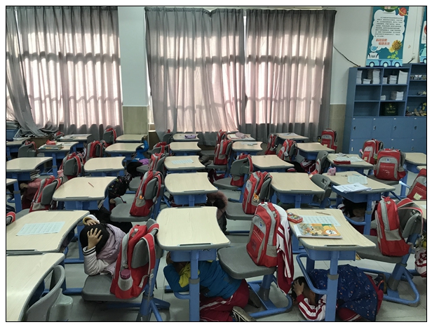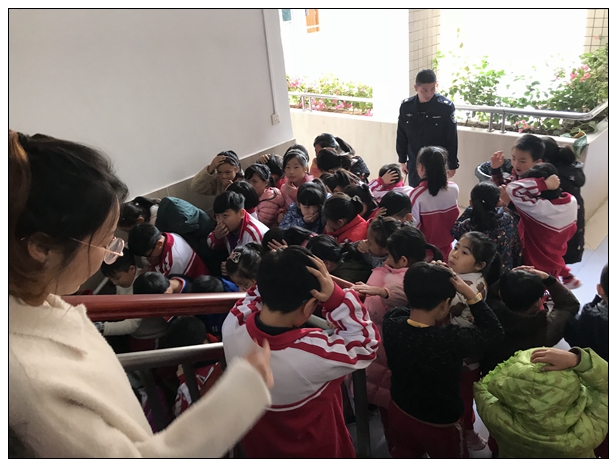 演习前,学生处提前制定了切实可行的演习方案,并分层分类召开现场会和网络会议进行知识培训和工作布置,以确保演练达到预期效果。各班主任先在班会上也进一步普及了地震逃生知识,还给同学们讲述了应急避震动作要领和疏散逃生的要求。十点整,学生们听到地震警报声响起,都迅速躲在课桌下避难;当疏散命令下达后,各班学生在班主任老师的带领下有秩序的迅速撤离教学楼。在楼道相对窄小的楼梯转弯处,都有值班老师、保卫队队员维持秩序,以确保学生有秩序并且能够迅速通过,整个疏散过程紧张而不慌乱。疏散到操场的学生在班主任老师的带领下,整队、清点人数,全校学生无一人掉队,师生全部到达指定安全位置。