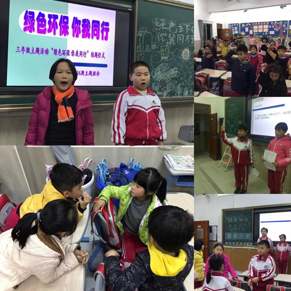 为了提高大家的环保意识,改变不良生活习惯,本学期我们三年级组以“绿色环保,你我同行”为主题,进行了一系列的大型环保教育活动: