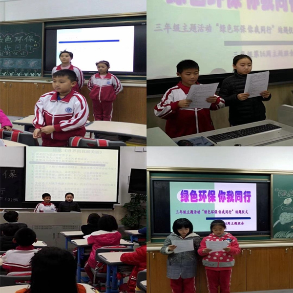 第9周我们召开三年级组环保教育大型系列活动“绿色环保,你我同行”启动仪式。通过图片展示、诗歌朗诵、环保倡议、环保承诺,让我们明白环境保护已迫在眉睫。