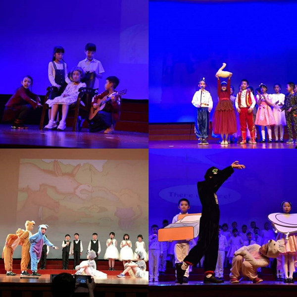三5&8班的小演员或头戴老奶奶的假发,或围绕其身旁弹吉他,A Pretty Dream是不是更温馨?Big Black Cat and Little White Mouse让三6&11班的孩子们过了一把瘾——表演者尽兴,旁白者尽情,这样的话剧,要不要来一打?还有三1&2班的The Golden Goose,三7&10班的The Breman Town Musician,都是不可错过的经典童话剧。不能身临其境,那就一睹为快吧!