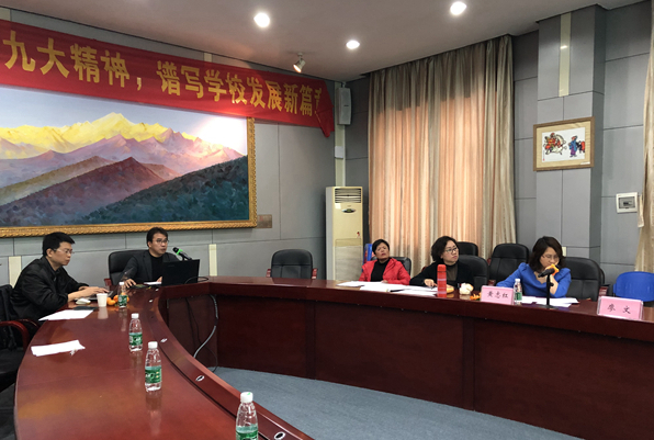 听完汇报后,黄志红、廖文对两个课题进行指导。专家们的指导意见包括,应进一步完善课题的顶层设计,进一步论证课程设置的合理性,分解课程目标,细化课程评价体系,完善课程逻辑系统等等。专家领导的发言睿智中肯,给课题组成员带来较大启发。