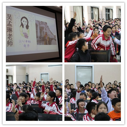 大会在同学们的激情期盼中开始了,第一个环节是“我猜我猜我猜猜猜”。大屏幕上出现了孩子们画笔下的老师,让大家竞猜画的是哪位老师。会场顿时掀起了高潮,同学们根据画像准确地说出老师的名字,说明每位老师在孩子们的心中都是轮廓清晰,独一无二的!