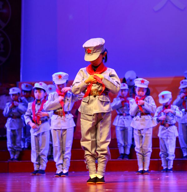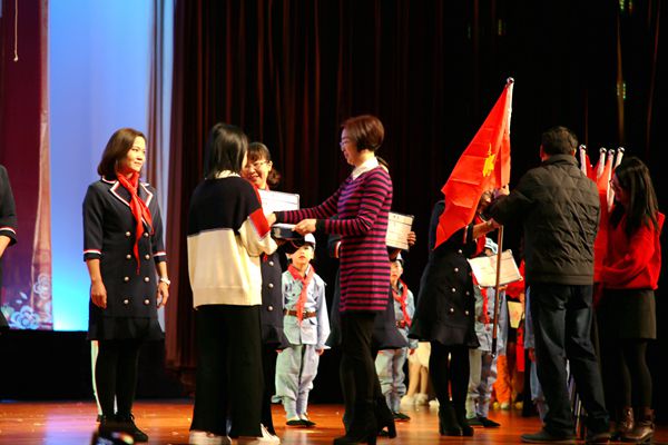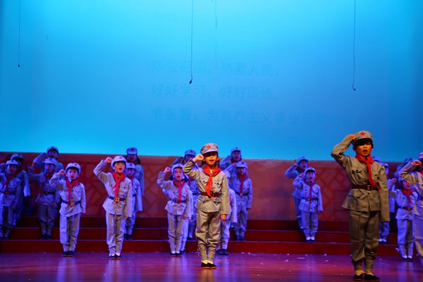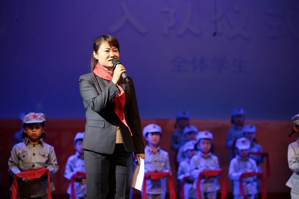 接下来,学校少先队辅导员李蔚老师宣布一年级学生正式加入中国少年先锋队。一年级小朋友们站着整齐的队伍,一丝不苟地佩戴上鲜艳的红领巾。