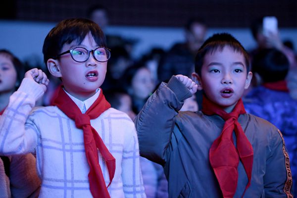 接下来,一年(8)班的全体成员同台演绎《少年中国说》。家长和孩子们的朗诵声响彻黄华楼礼堂,鼓声飞扬,气势如虹。最后,在班主任林老师的引领下,孩子们放飞纸飞机,放飞希望。如今中国在世界岿然屹立,外校的学子们当延续希望,成为国之栋梁。