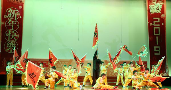 武术是中国的精魂,千百年来,武术被作为强身健体,伸张正义的民族象征,是带有东方气息的文化瑰宝。今天,一年级13班男生们在这舞台上一展身手,为我们带来了中华武术表演《智武少年》。帅气有力的动作,伴随着飒飒生风的黄旗,惊艳了在场的观众。