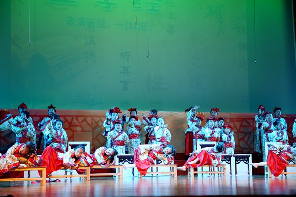 《三字经》是中华民族珍贵的文化遗产,它短小精悍、琅琅上口,千百年来,家喻户晓。一年(11)班的孩子们为我们带来的表演《三字经》,颇具文化韵味。