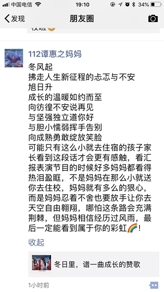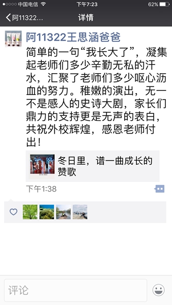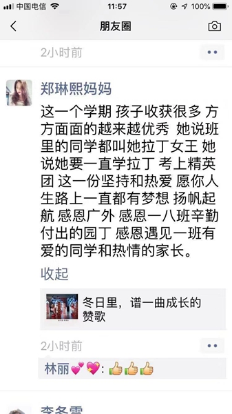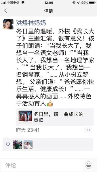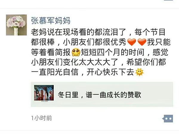 开学初哭鼻子的小豆豆,如今已是自信、阳光、独立一年级学生;往昔摇摇生长的小树,已经渐渐挺拔。回顾孩子们一学期来在外校的点点滴滴,成长的花香动人心弦。无声的岁月中,成长得以你我见证。