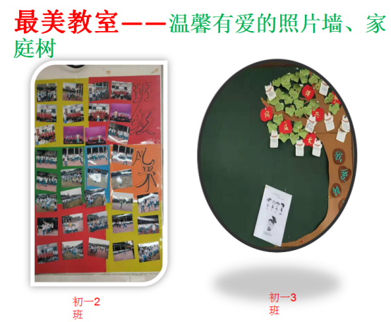 第二环节,班级文化风彩展示——各班通过短视频或者PPT展示自己班级的班徽、班训、班级创意合照、教室环境布置、感人瞬间。
