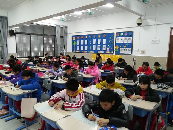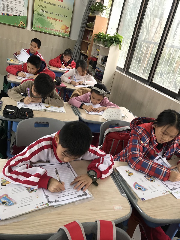 比赛中,学生认真仔细的书写,一个个优美的字母从他们的笔尖流淌出来。经过这次比赛,期待学生们对自己的书写水平有明确的认识,从此更认真的对待每次书写。