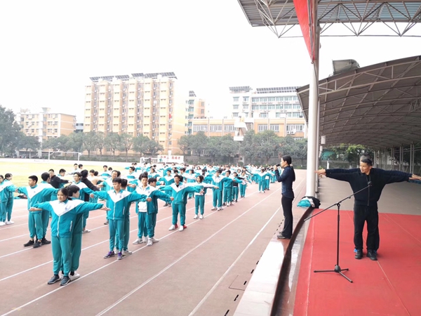 一旁观察的老师们也忍不住跃跃欲试。姜老师说:“这些动作跟我每天饭后的热身运动很相似,但是加上专业老师的技术指导,感觉又有不一样的地方。”