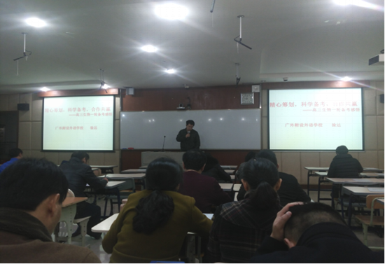 高三年级调研考试是广州市组织的全市统一测试,是高三整个复习阶段继摸底考试后的又一次重要考试。为及时分析我校高三调研考试的测试情况,准确把握学生的复习现状,加强对2019届高三复习的指导,1月9日晚上,在教学处的组织下,高三全体教师及学校领导齐聚8507多媒体教室认真研讨本次考试。