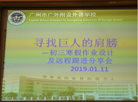 寒假即将到来,寒假作业也不远了。很多老师都会说2019年寒假当然也要让孩子们过得充实、有趣,有意义!然而我们初三毕业班的寒假更寄托着重大的使命——假期是用来提升的!那么我们初三的寒假作业就有多重的功能,这对毕业班的老师来说就是一个极大的考验,既要让寒假作业对中考有针对性的训练,又要让寒假作业有趣而不乏味,让寒假充实而不疲惫。本着这样的使命,2019年1月11日晚上,在年级主任张亚娟主任的主持下召开“寻找巨人的肩膀”——初三年级寒假作业及远程跟进分享会,全体初三老师参加会议,校领导陈莲副校长、王攀峰主任、杨世华主任也出席本次会议。