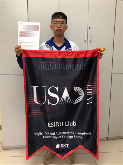 今年,广外外校正式成立USAD社,并且通过了USAD组委会的注册认证。首届社长由中美11A陈彦恺同学担任。在社团的注册和运营,平时的备赛组织方面,他付出了极大的心血,为国际部的同学以后的USAD活动奠定了基础。