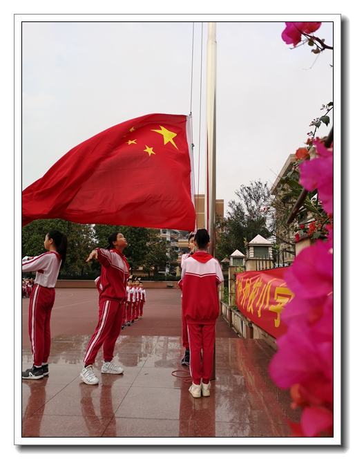 第一项是升旗仪式,全体师生怀着崇高的敬意注视国旗冉冉升起,寄托了对外校未来的美好憧憬和祝愿。