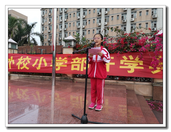 强将手下无弱兵,在外校全体老师的辛勤培育下,小学生阳光向上,积极进取,每个人都在适合自己的舞台上勤奋努力。仪式第三项是优秀学生代表五(4)中队蔡璐阳同学讲话。