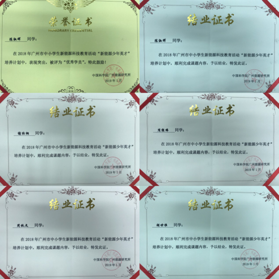 经过层层选拔,从广州市各中学中选出了42名优秀的高中生参与新能源少年科学家的培养项目。我校学生积极参与,最终高二年级的陈淑晖、胡世恒、谢欣桐、周经纬、周秋文共五名同学,入围本次培养活动。学员们在11位能源所老师的指导下分为15组,分别独立完成一个研究课题。经过一个月的努力,学员们于2018年12月30日顺利完成结业答辩。