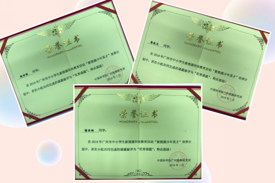 根据学员们研究课题的完成情况,评选委员会评选出了一等奖论文1篇、二等奖论文2篇、三等奖论文3篇。根据课题研究中学员们的研究表现,评选委员会从42名同学中评选出了13位优秀学员。我校入围的五名学同学均取得了由中国科学院广州能源研究所颁发的结业证书,有两篇论文获奖,陈淑晖同学还获得了“优秀学员”称号。