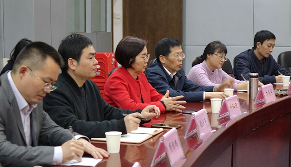 在校史展厅会议室,考察团观看了学校宣传片。校长万清华就我校教育教学二次改革、工作重点和新举措等情况做了经验介绍。