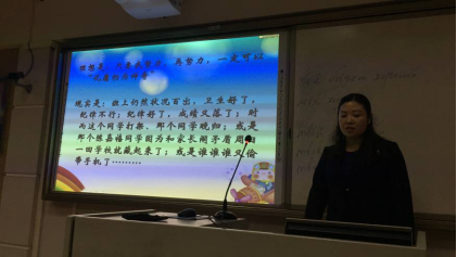 接着是罗萍老师给我们分享了她两年来在家校共育方面的实践探索与心得体会。罗萍老师先和我们分享了他与家长的一些信息交流,她说家长提供给她的信息使她大开眼见、拓展了思维。所以她有感而说:“教育就是一棵树摇动一棵树,一朵云推动一朵云,一个灵魂唤醒另一个灵魂。”由此她觉得让家长进班给自己的孩子和同学们“传经送宝”将是一件极具意义的事情。为此她积极联系“促动家长”、思考班级存在的问题、针对问题邀请相关领域的家长进班、做好一系列的欢迎准备。