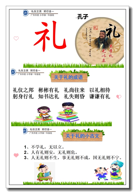 讲文明、懂礼仪是中华民族的传统美德。为推进文明校园建设,进一步提升我校学生的文明礼仪素养,积极构建和谐文明校园,广外外校一年级组决定于本学期开展“礼仪之美知行合一“大型主题活动。