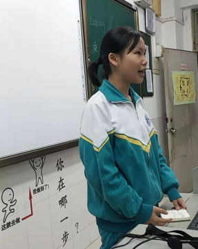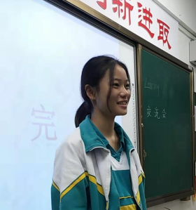 后面,班主任罗老师又临时邀请了凌恺同学分享她的学习经验。凌恺同学说,她个自己树立了一个竞争对手,她们互相学习,相互促进。