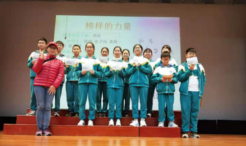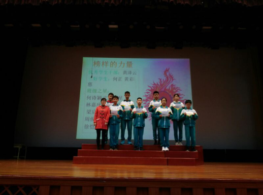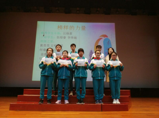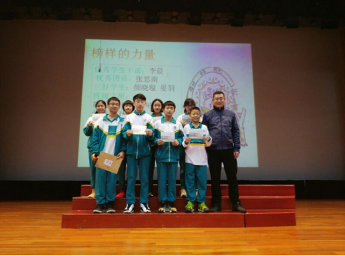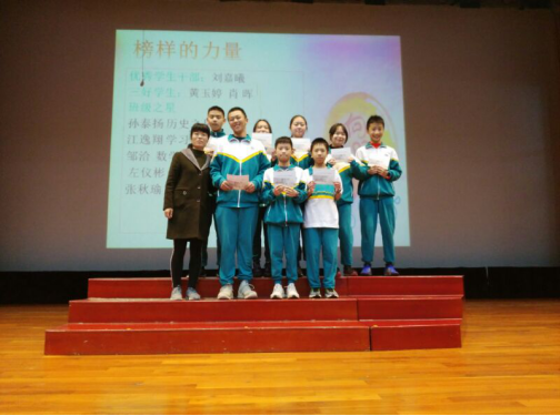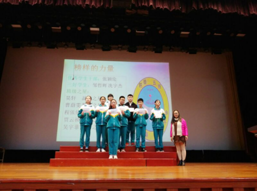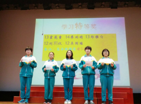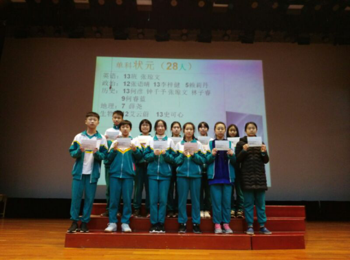 2019年2月25日,初一年级师生在华花楼礼堂召开了年级学生大会,以表彰在上学期期末考试中取得优异成绩的同学,规划本学期的学习与生活。