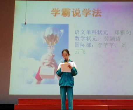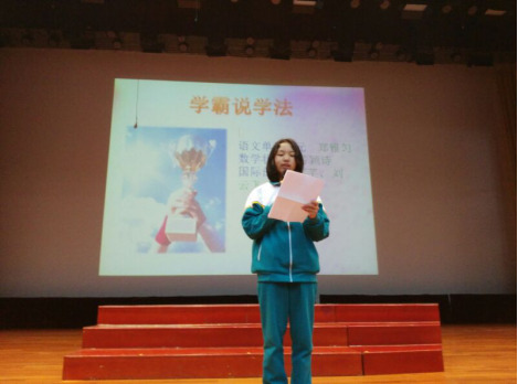 首先发言的是初一(13)班的郑雅匀同学。作为本次期末考试的语文单科状元,郑雅匀同学分享了一些对于学科的心得与体会。她说道:语文是一个需要积累的学科,阅读和作文是重中之重。提高作文水平的方法有很多,比如生活中的角角落落,如果我们试着多留心多观察,又何尝不是为作文提供了许许多多的可选题材。她的意见对我们从今往后的语文学习有帮助,值得我们去借鉴。“认真刻苦的态度犹如灯塔,指引我们驶向成功的彼岸。”