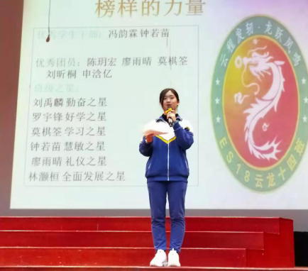 最后,年级主任卢小玲老师为我们作了总结。一方面是总结了过去一学期中我们的进步与不足之处,且表彰了优秀学生,为我们布置下本学期的目标,在过去的学期中,同学们用勤奋刻苦的态度,为年级、班级建设取得了较好的效果。开展了许许多多的活动,比如校运会开幕式以ES2018的大型方阵摆字,以及震撼的团体操,校内的艺术节,校外实践等,获得了领导、家长的一致好评,在广外外校初中部一次次留下了耀眼的风景线。卢老师还提出,我们初一十四个班,各有亮点各有特色,但存在的问题还是应该给予重视。比如:仪容仪表、迟到、卫生问题等违纪和安全问题,重点需要改进的则是学习上的习惯:做事没有时间观念和计划性、目标不明确、怕吃苦等等。