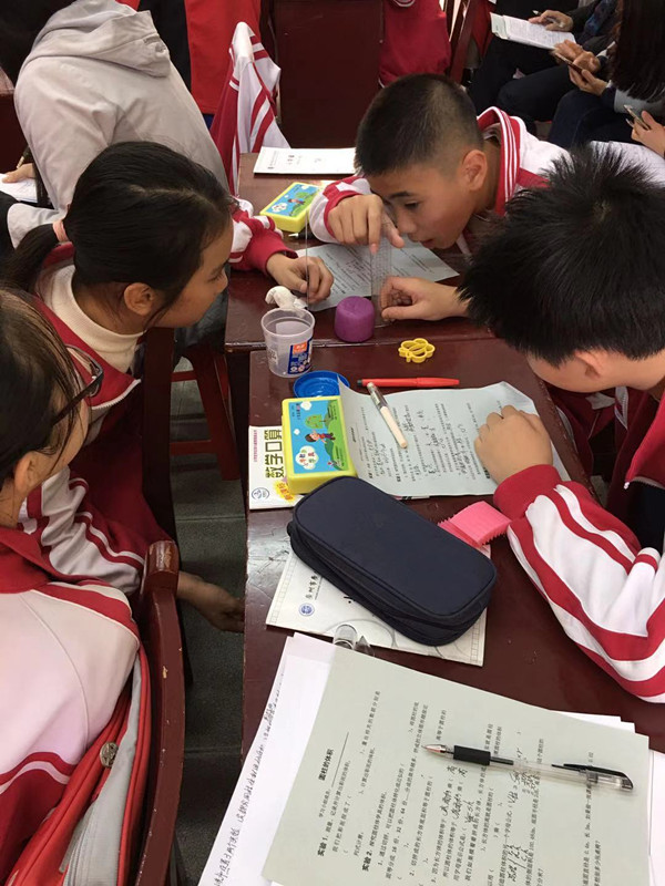 实验步骤:(1)四人小组合作,测量并记录圆柱体彩泥的相关数据。学生可能测量的数据:直径、高。](2)小组讨论:将圆柱体彩泥捏制成什么形状?学生会把彩泥捏成长方体、正方体,如果改变了圆柱的高,则只能得到体积,如果能保持原有的高不变,则能发现圆柱体积的计算方法。(3)测量、记录并计算出彩泥的体积。(4)小组汇报。捏成长方体时,量长、宽、高的数据,计算出的体积,数据可能不同但体积基本相同。长方体的体积就是圆柱体的体积。得出:底面积乘高=圆柱的体积。