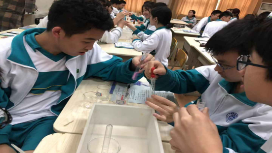 为了培养学生的表达、交流能力,及时发现知识中存在的问题,杨老师鼓励学生主动上台展示实验,共享学习成果、贡献学习困惑。在实验过程中,杨老师相信学生、敢于放手,关注全体、重视指导,倡导民主、鼓励质疑,从而激发学生创新精神和实践能力。也培养了学生的操作技能,提高化学素养。