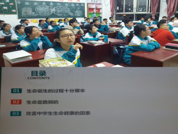 伍爸爸从“生命诞生的过程十分艰辛”、“生命是脆弱的”、“危害中学生生命健康的因素”三个方面讲述了珍惜生命、关爱健康具体做法,孩子们听得非常入迷。