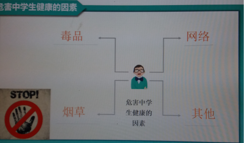 其中分析危害中学生健康的四大因素:毒品、网络、烟草、其他伍爸爸针对中学生可能存在的现象逐一分析其心理原因、具体表现、严重后果,并举出他在医院接诊时的真实案例和视频让孩子们自己去感受,自己去辨别,让孩子们受益匪浅。