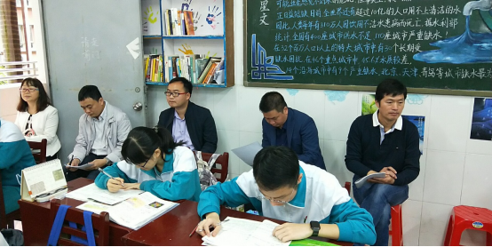 首先,立足于三个年级目前所处教学阶段,科组安排高一王强老师承担新授课、高二苏艳娥老师承担文科学业水平考试复习课、高三黄雪容老师负责高考高频考点试题讲评课。三位老师精心准备,备课组认真集体备课,老师们参与听课观摩。