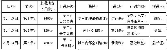 3月13日,地理科组3位老师各上了一节研讨课,围绕“高效乐学”课堂范式的建构进行探讨。