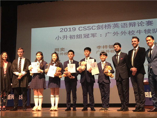 3月31日第四届CSSC剑桥英语辩论赛决赛,广外外校牛犊队从128支队伍中脱颖而出,终获小升初组冠军!