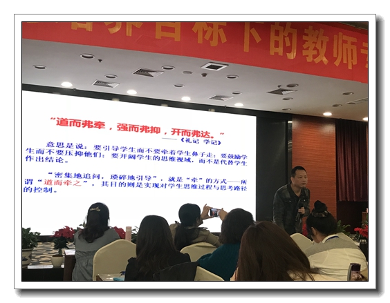 龚雄飞,重庆市沙坪坝区教师进修学院院长;全国模范教师,特级教师;教育部中小学校长国家级培训专家库专家;教育部“国培计划”专家库专家;先后出版教育论著6部。应邀在全国各地举办了数十场“学本教学”专题报告会,为基础教育课程改革积极传播大智慧和正能量。龚院长通过结合自己数十年的教育教学与办学管理经验,理论联系实际,针对目前国内中小学校课堂教学问题进行深入剖析,提出了卓越课堂的一个模式,即先学后教、互助展评;三种学习方式,即自学、互学、展学;三个中心,即学生中心、学习中心和体验中心的核心观念。以及如何设计导学案,如何有效开展小组合作学习等等。涉及的内容全面,又接地气、可操作性强。听了龚院长的讲座,我们更多的是反思和剖析,回想一下自己在实施小组合作中存在的问题,再结合自己的学习感悟,重新理清思路,在小组合作中进行更深入的探索,真正实现小组合作学习的有效性。