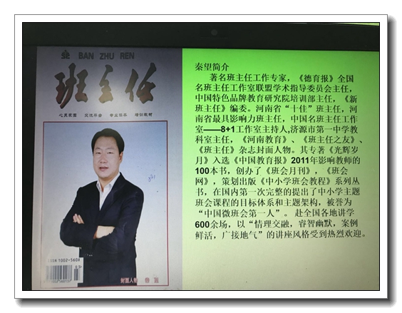 秦望老师给我们做的关于《十招打造迷人微班会》的培训。秦望老师来自8+1班主任工作研究室,它是一个以班主任常规管理研究为基础,以班会研究为核心,以个性化发展为导向的班主任团队。“8”指的是工作时间,“1”指的是业余时间,团队成员要在工作时间一心一意;在业余时间多做一点,多读一点,多思一点,多写一点,多研一点。工作时间决定你的现在,业余时间决定你的未来。何谓微班会?秦望老师解释道:广义的“微班会”是指针对性强,花费时间少,解决问题及时,场地不限,自由灵活的一种面向集体的教育形式,它是主题班会有效补充。那么如何打造迷人的微班会呢?秦望老师给我们介绍了十个妙招: