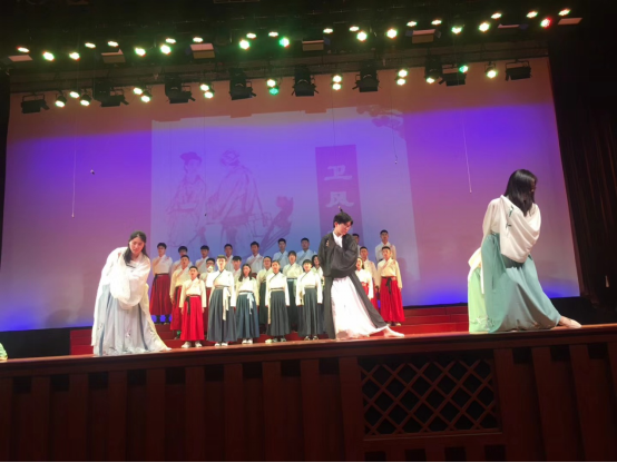 3月27日晚七时,广外外校高中部第11届读书节汇报演出暨颁奖晚会高二专场拉开帷幕。晚会主题为:“致敬经典”;晚会形式为:课本剧表演。